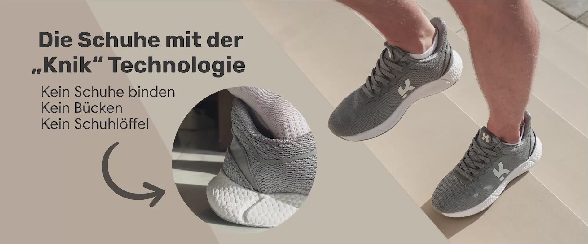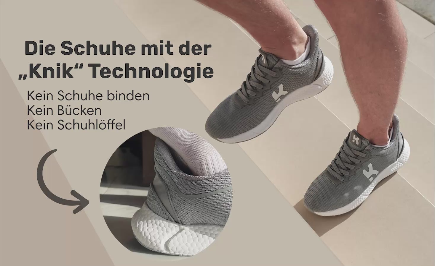 Die einzigartigen Schuhe von Knik zeichnen sich durch ihre innovative Technologie aus, die ein müheloses Schuhe anziehen ohne Hände ermöglicht. Als aufstrebendes Startup hat sich Knik zum Ziel gesetzt, den Alltag der Menschen zu erleichtern. Die innovative Knik-Technologie ermöglicht ein einfaches und schnelles Hineinschlüpfen, ohne dass Schnüren oder mühsames Bücken bei Rückenschmerzen erforderlich ist. Noch dazu setzt Knik bei ihren Schuhen auf höchsten Komfort und Bequemlichkeit um auch bei langem Stehen immer Halt zu bieten.