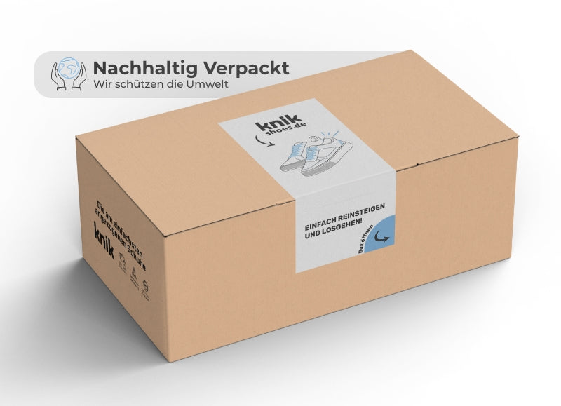 Wenn möglich, schicke uns die Schuhe in ihrer Originalverpackung zurück. Dadurch können wir die Rücksendung effizient bearbeiten und sicherstellen, dass die Schuhe während des Transports geschützt sind.
