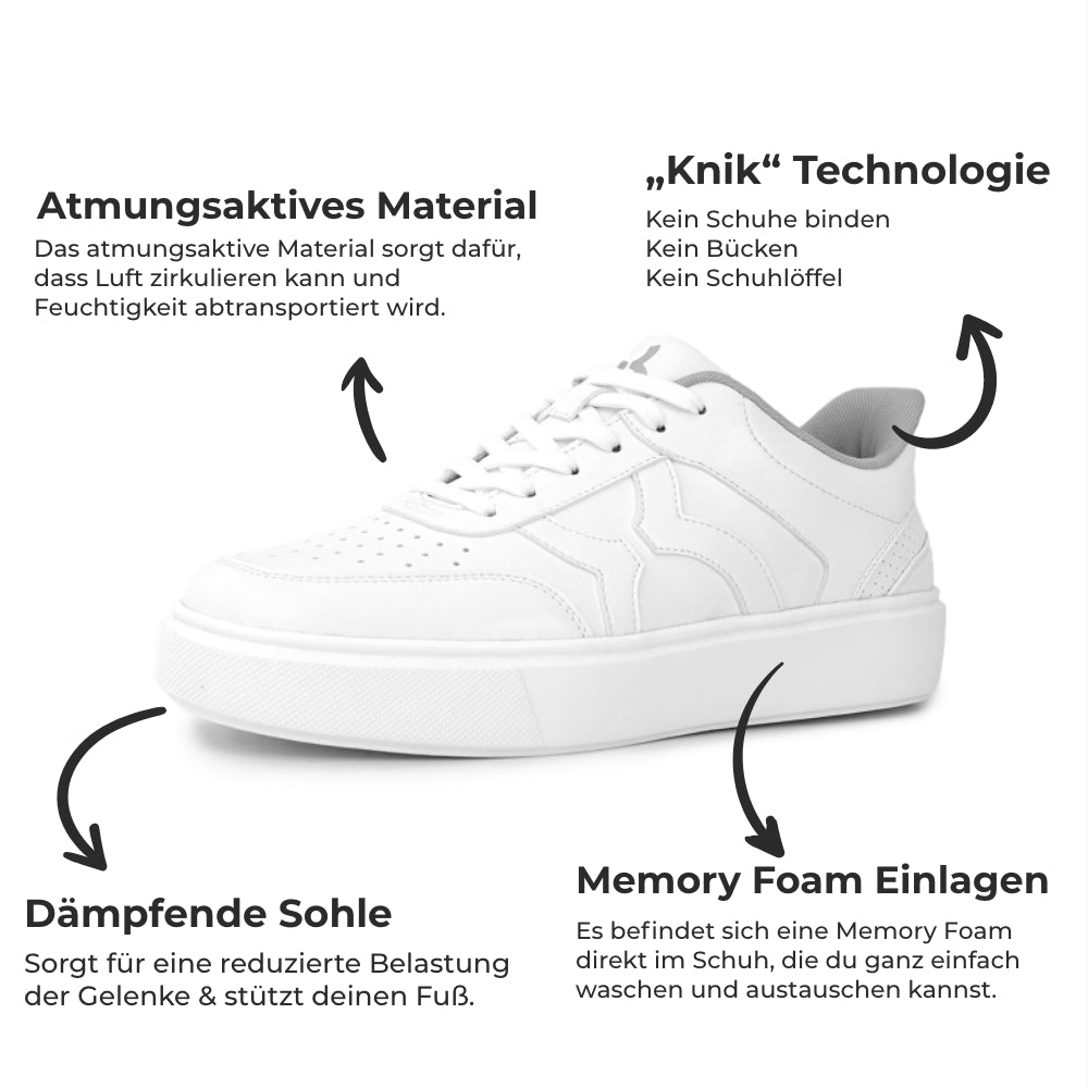 Mit unseren Kniks gehören mühsames Schnüren oder lästiges Hineinschlüpfen der Vergangenheit an. Unsere einzigartige Knik-Technologie ermöglicht es dir, deine Schuhe mühelos und schnell anzuziehen, so dass du mehr Zeit für die wichtigen Dinge im Leben hast.