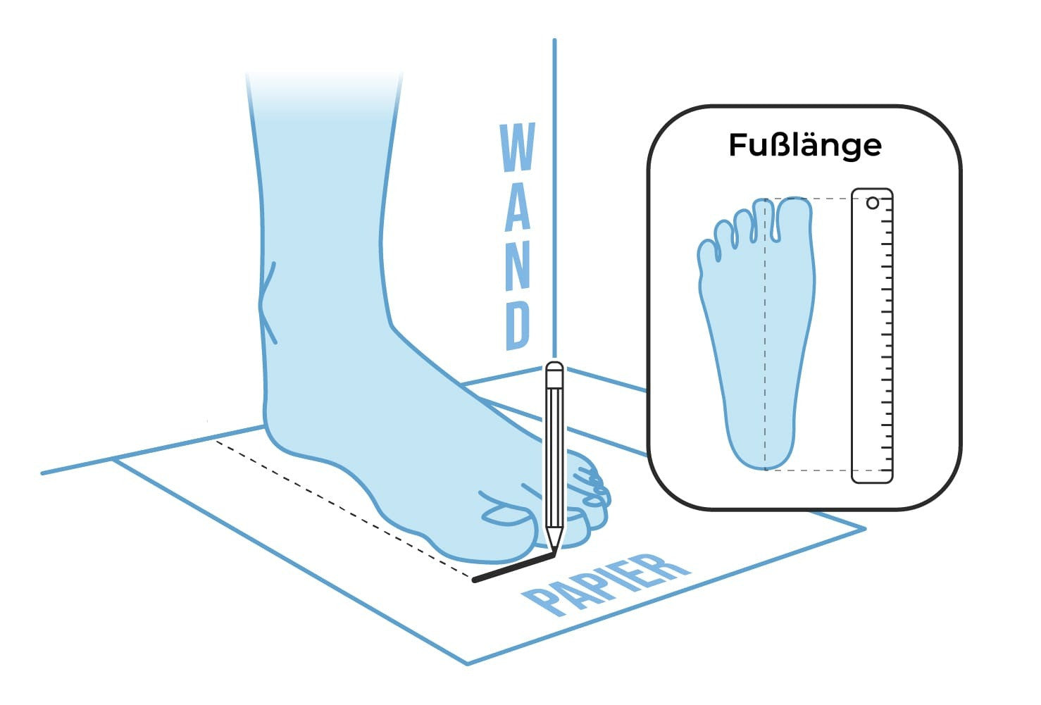 Füße sind selten genau gleich lang - für die Größenermittlung nimm bitte den größeren Fuß.